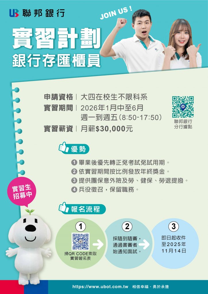 ■ 建議實習期間:自2026年1月中至2026年6月底