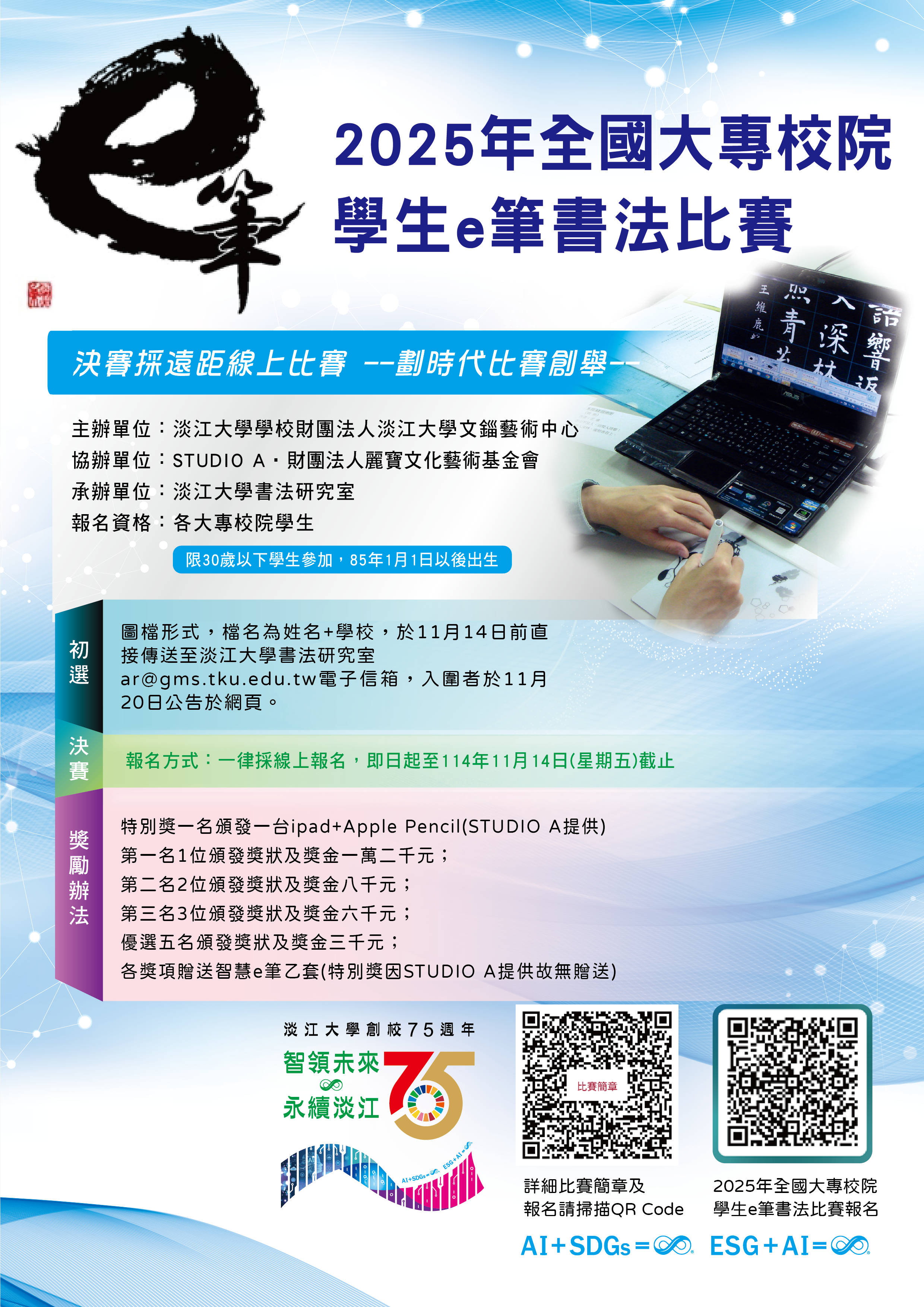 2025年全國大專校院學生e筆書法比賽開始報名,詳請參閱比賽簡章